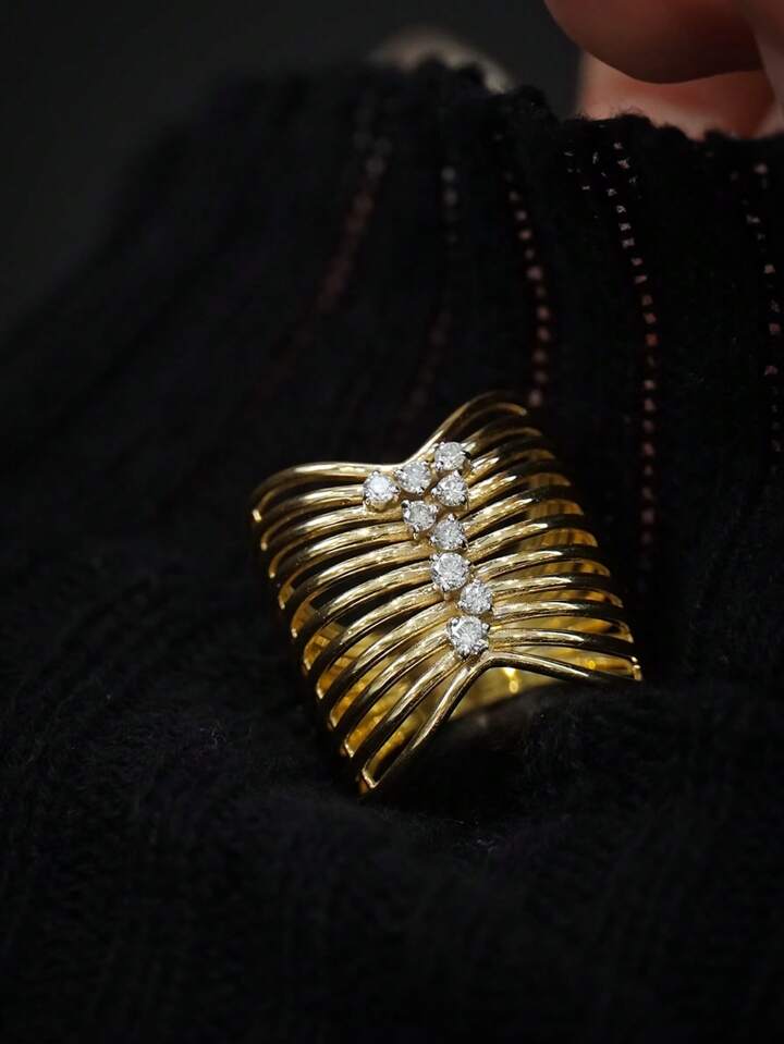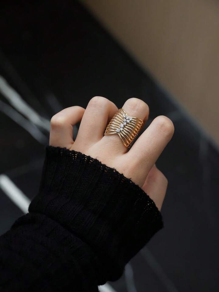 CM-AR947767 925 Sterling Silver Hollow Craft Wide Band Wave Line Minimalist Ring - Gold