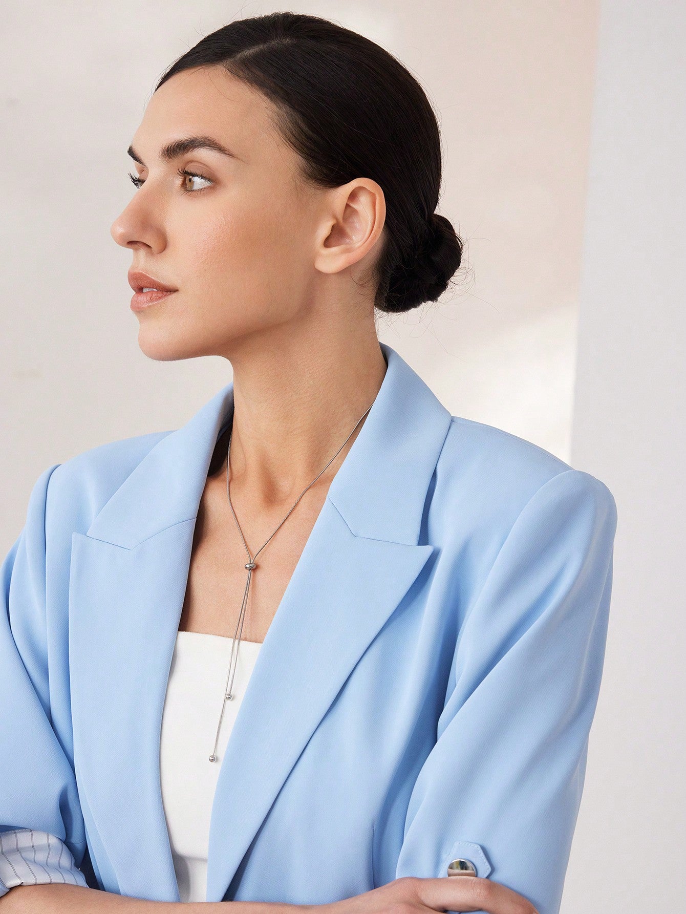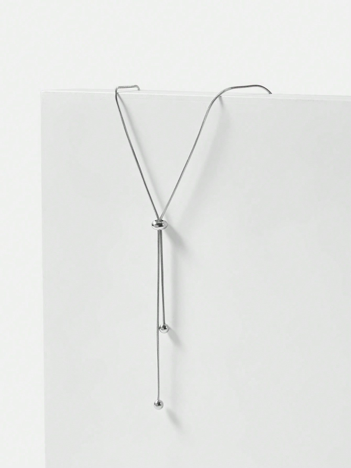 CM-AXS025015 Women Trendy Seoul Style Round Ball Charm Necklace - Silver