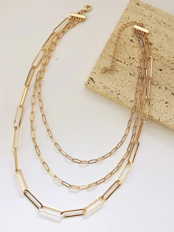 CM-AXS072421 Women Trendy Seoul Style Minimalist Layered Necklace - Gold