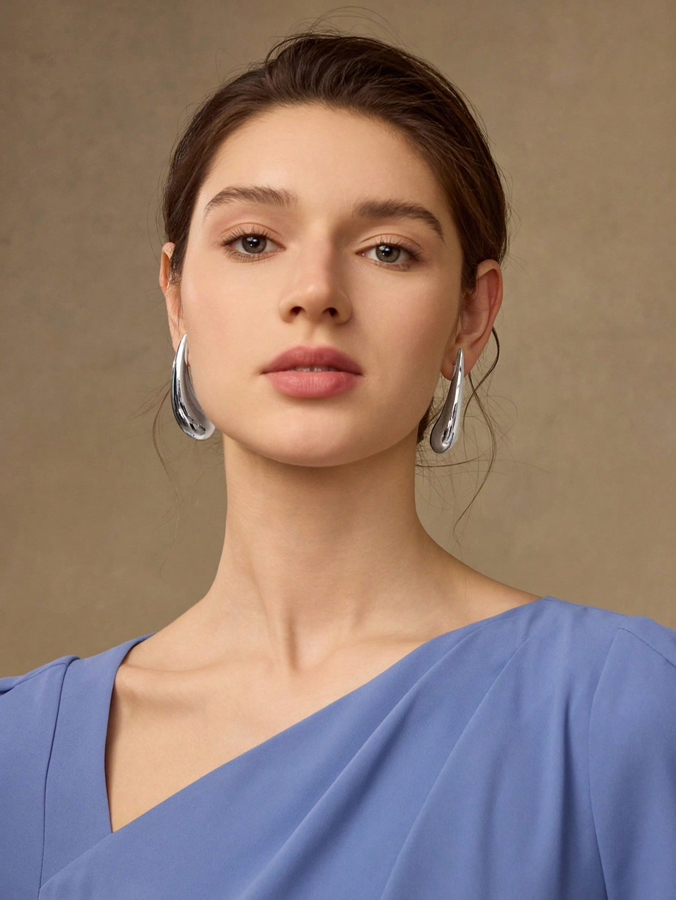 CM-AXS175211 Women Trendy Seoul Style Geometric Teardrop Stud Earrings - Silver