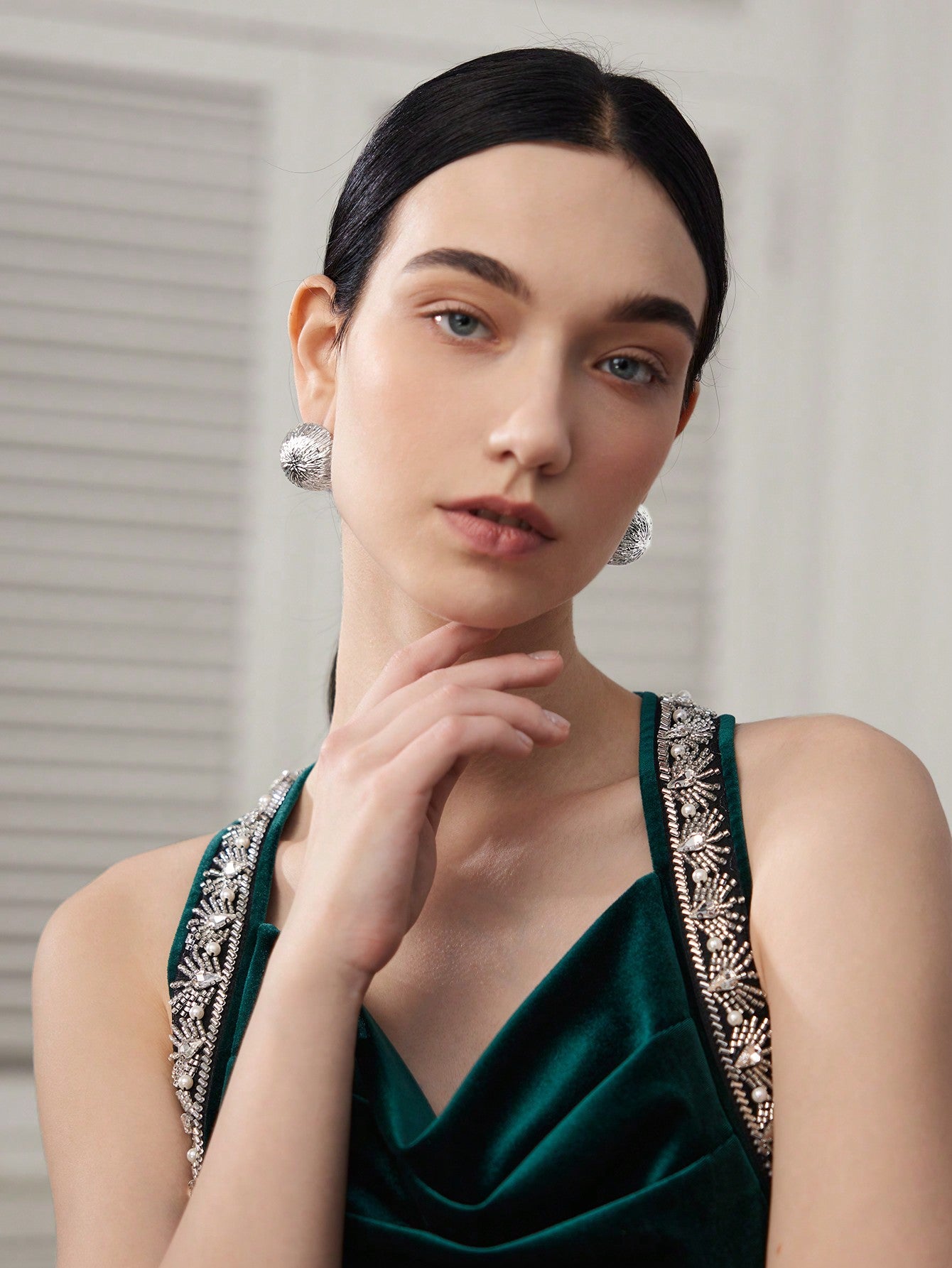 CM-AXS331839 Women Trendy Seoul Style Geometric Textured Stud Earrings - Silver