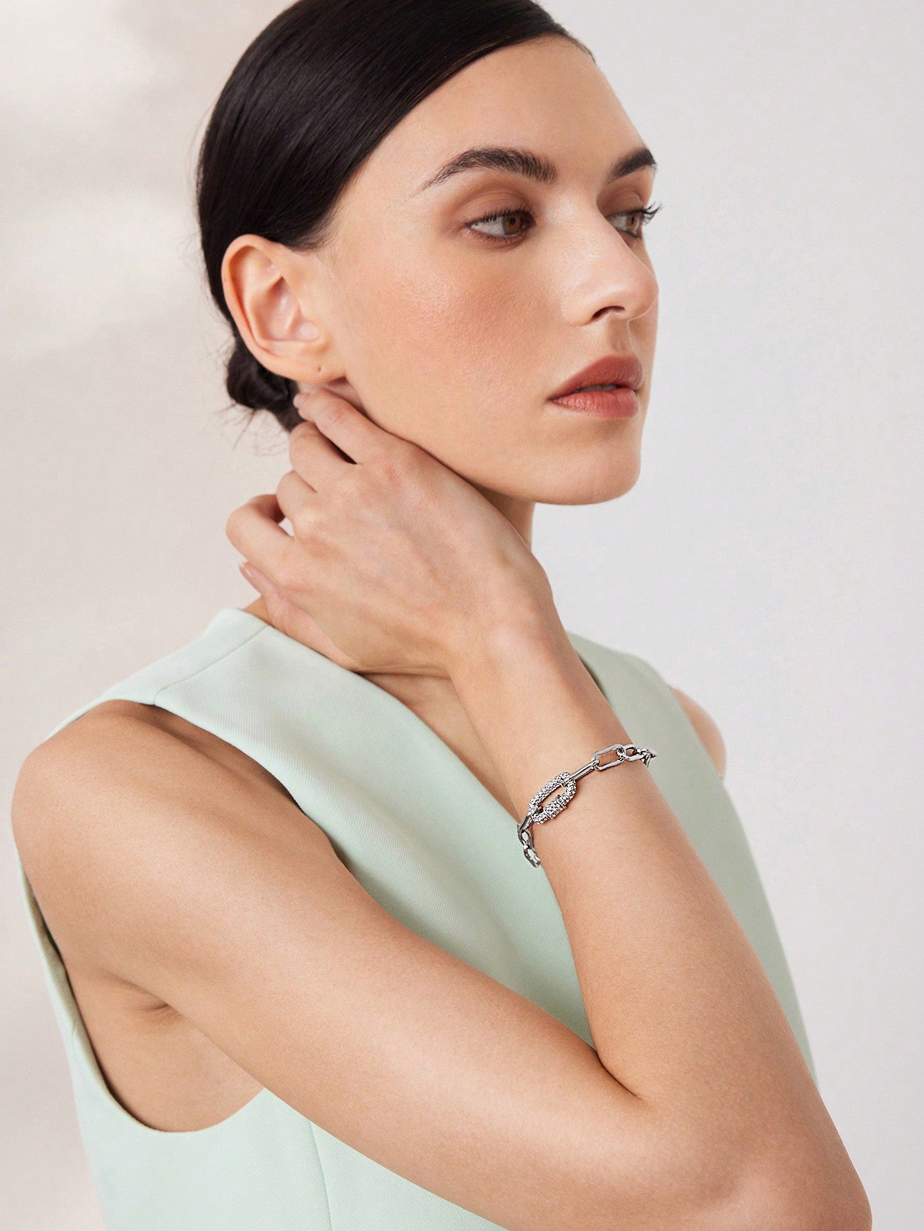 CM-AXS438313 Women Trendy Seoul Style Chain Rhinestone Bracelet - Silver