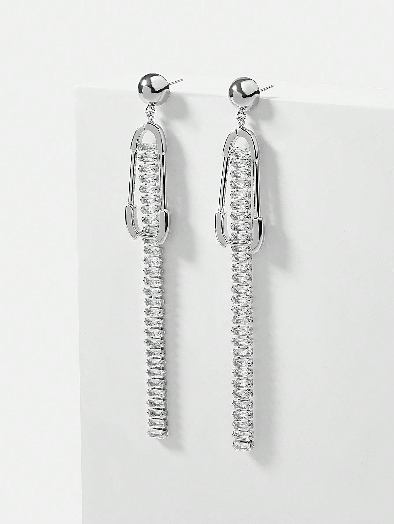 CM-AXS688516 Women Trendy Seoul Style Zirconia Stone Dangle Earrings - Silver