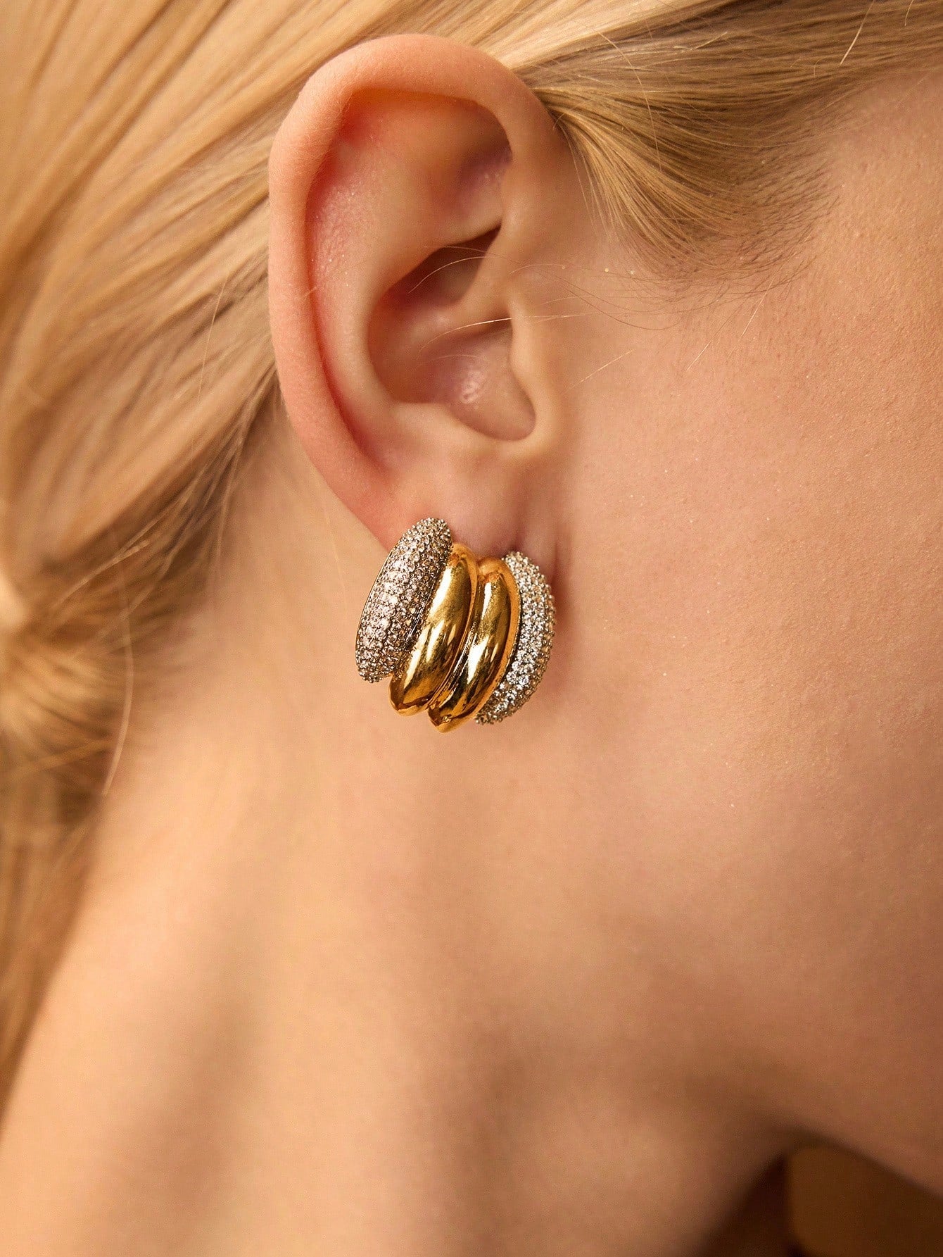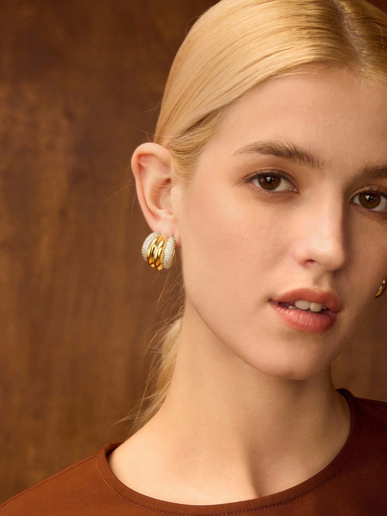 CM-AXS922968 Women Trendy Seoul Style 18K Gold Plated Multicolor Cubic Zirconia Earrings