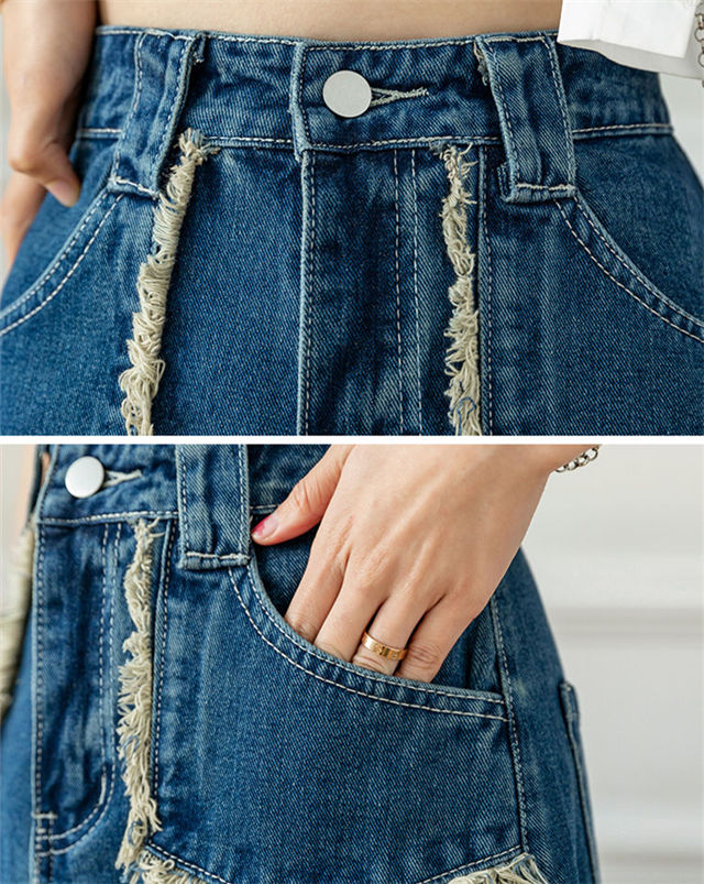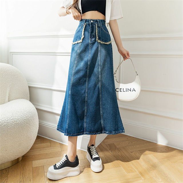 CM-BF071222 Women Preppy Seoul Style High Waist Fishtail Denim A-Line Long Skirt