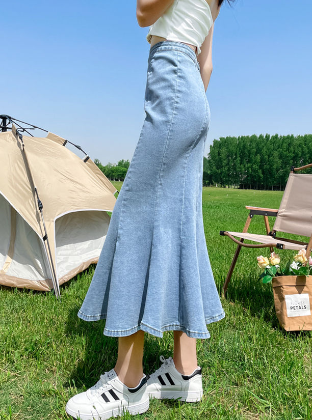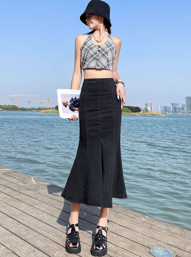 CM-BF073107 Women Preppy Seoul Style Fishtail Split Denim Long Skirt (Available in 2 colors)