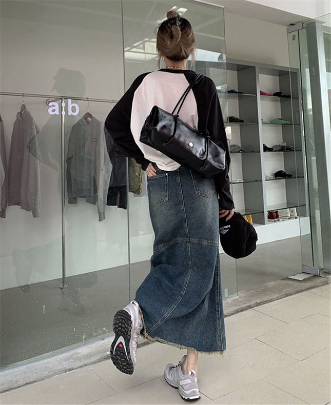 CM-BF082118 Women Retro Seoul Style High Waist Fishtail Denim Long Skirt