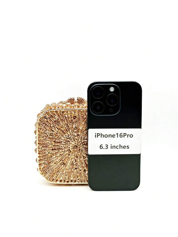 CM-BGS037116 Women Elegant Seoul Style Mini Square Box Rhinestone Clutch Purse - Gold