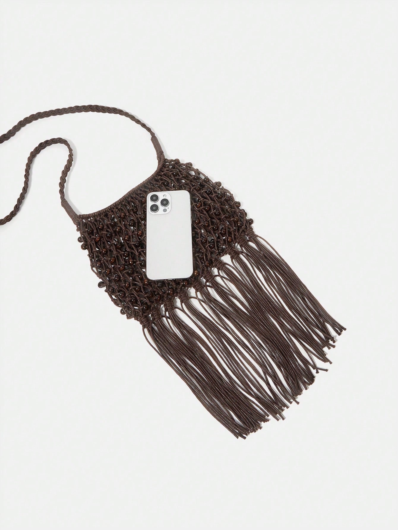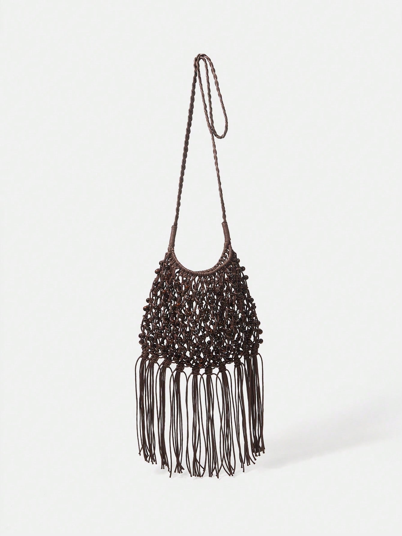 CM-BGS065171 Women Trendy Seoul Style Tassle Crochet Crossbody Bag - Coffee