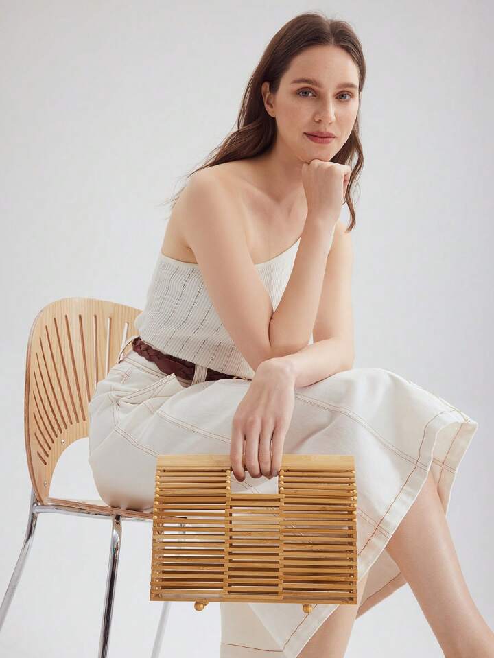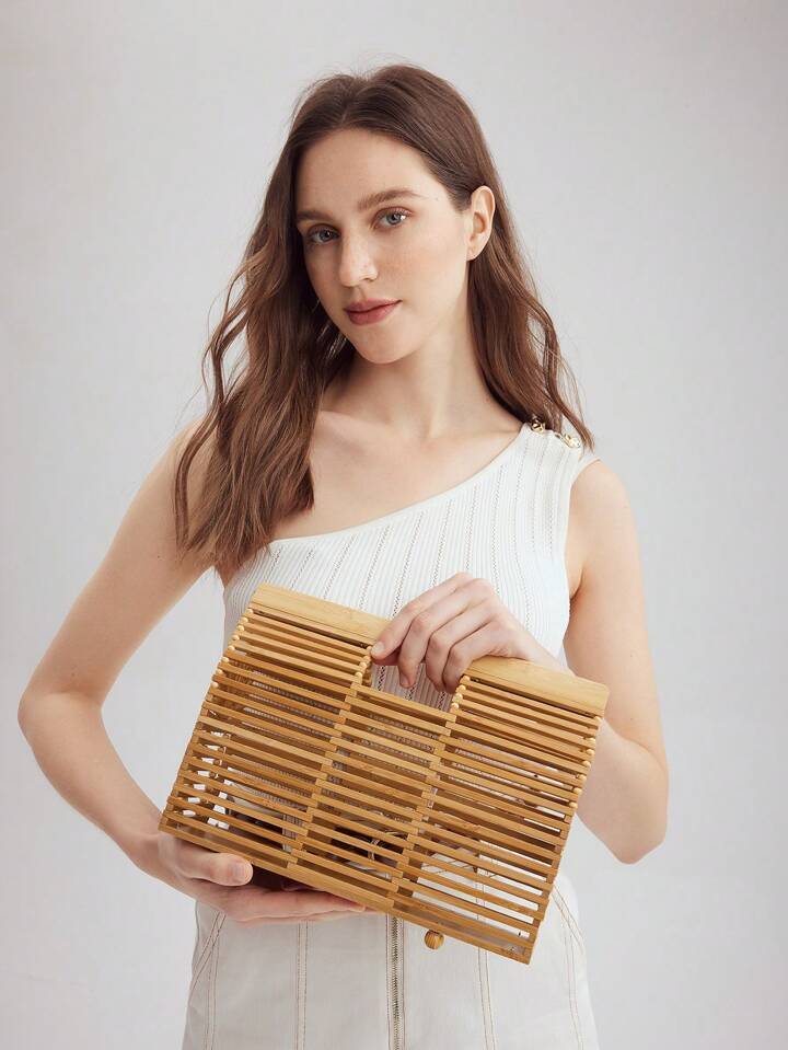 CM-BGS144900 Women Trendy Seoul Style Hollow Out Top Handle Square Handbag - Apricot