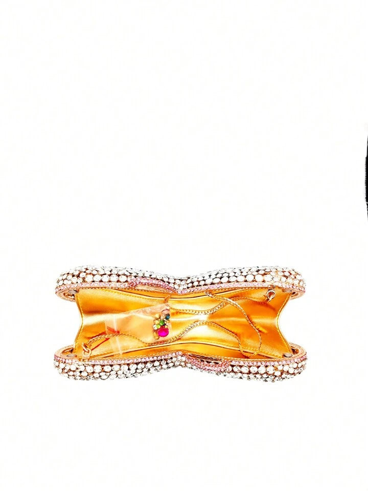 CM-BGS164955 Women Trendy Seoul Style Butterfly Rhinestone Crystal Clutch Bag With Chain Strap