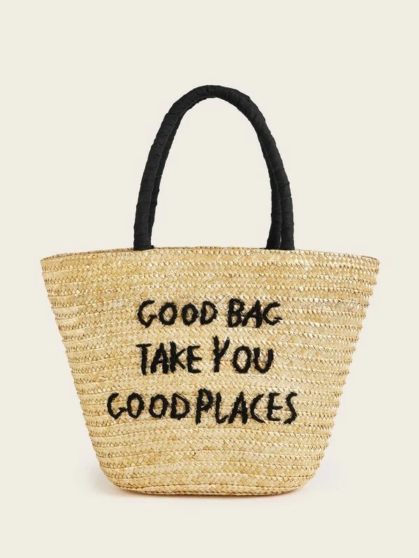CM-BGS204533 Women Trendy Bohemian Style Letter Graphic Braided Satchel Bag - Khaki
