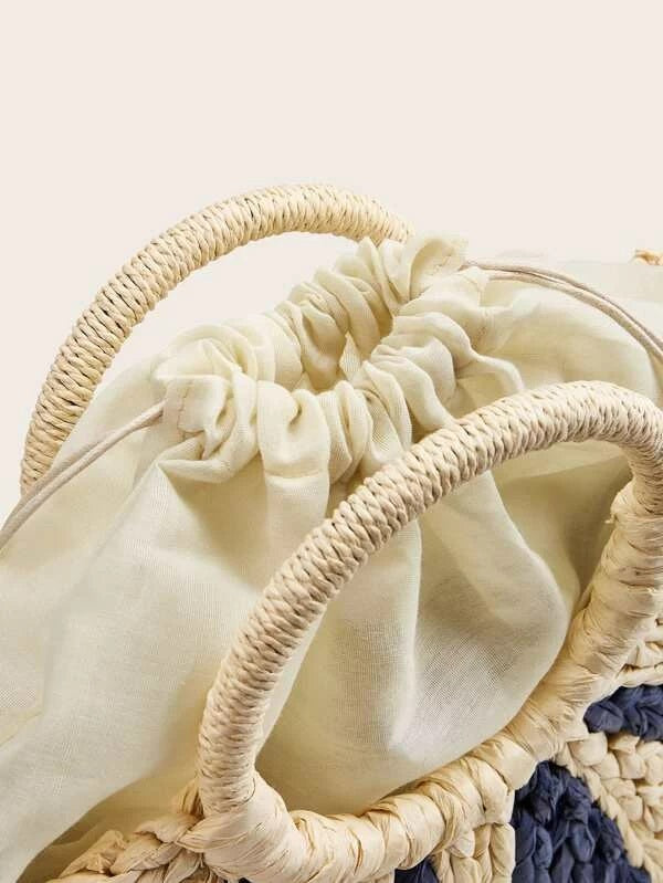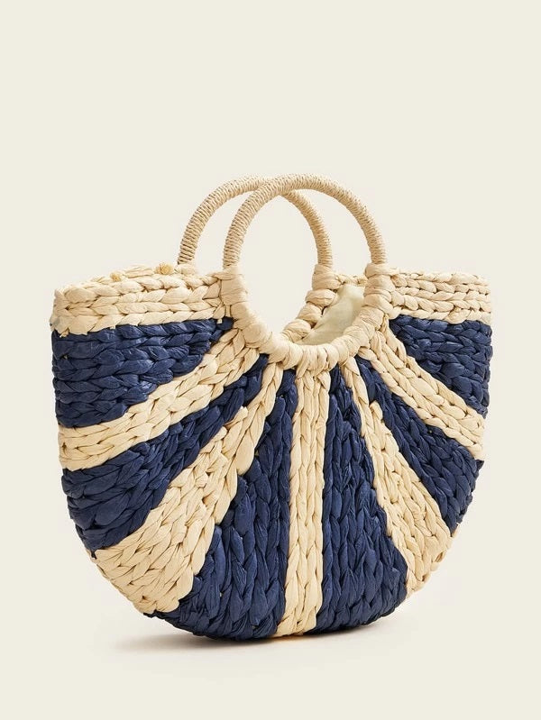 CM-BGS219957 Women Trendy Bohemian Style Ring Handle Two Tone Woven Satchel Bag