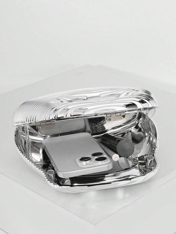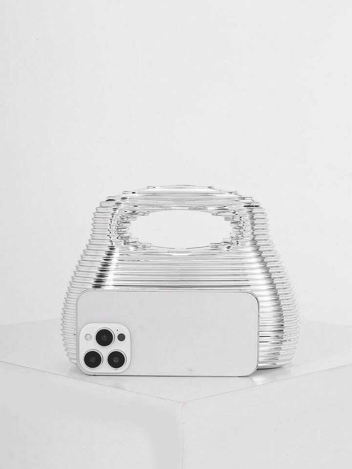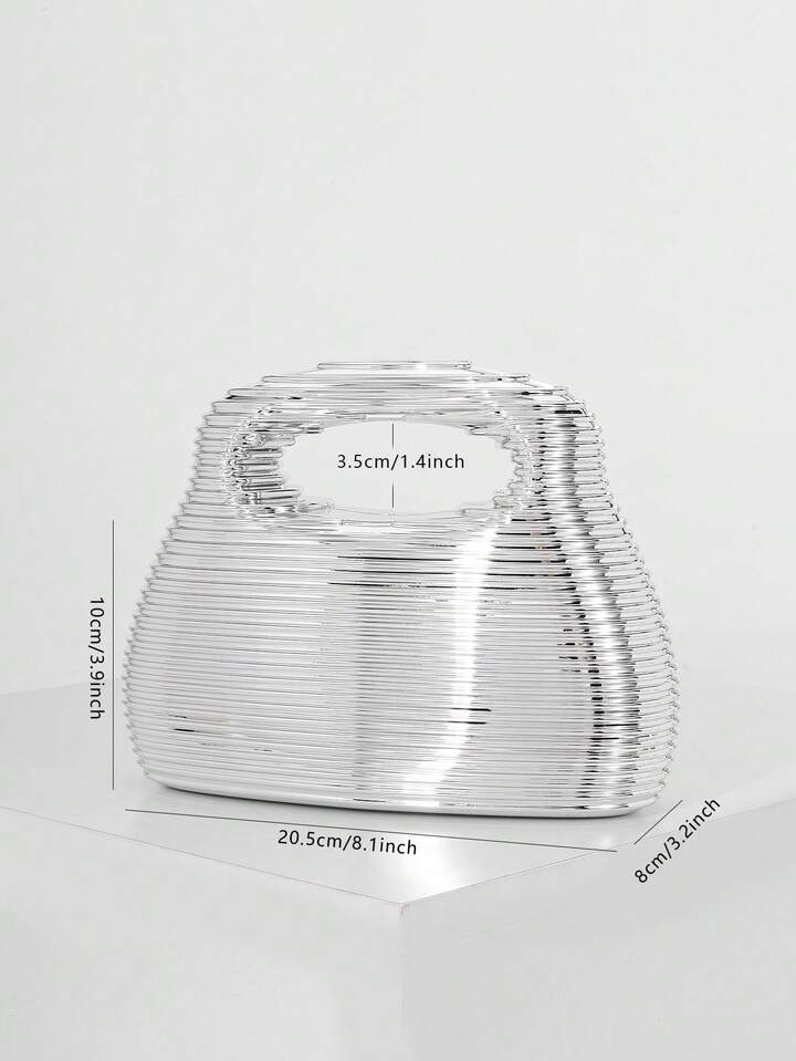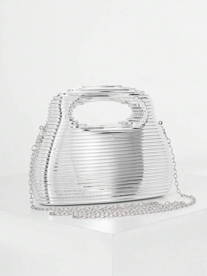CM-BGS223024 Women Trendy Seoul Style Acrylic Striped Design Minimalist Handbag - Silver