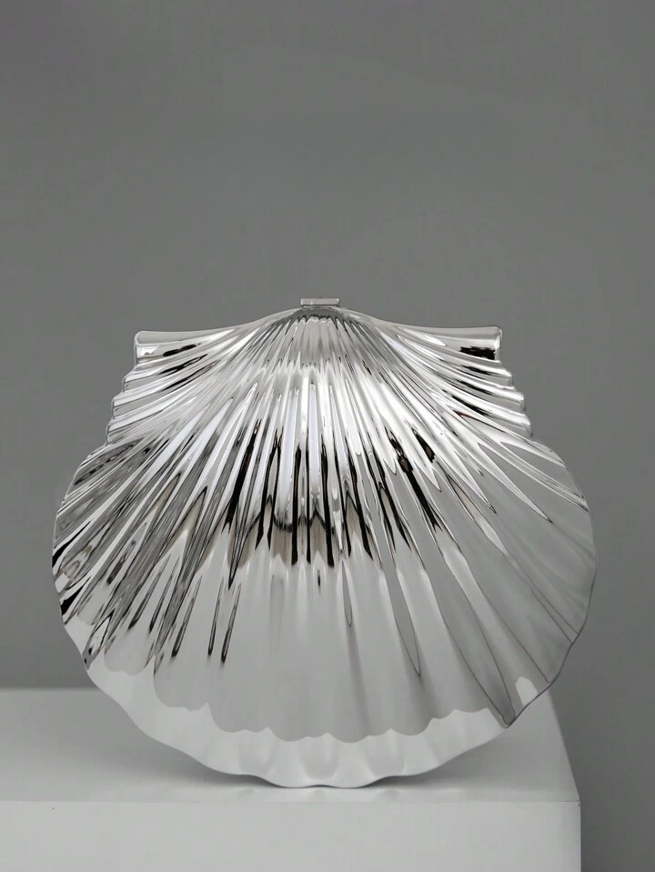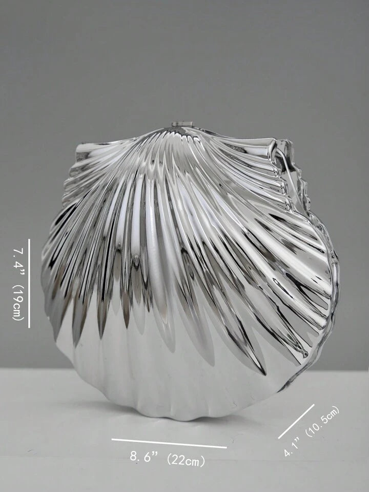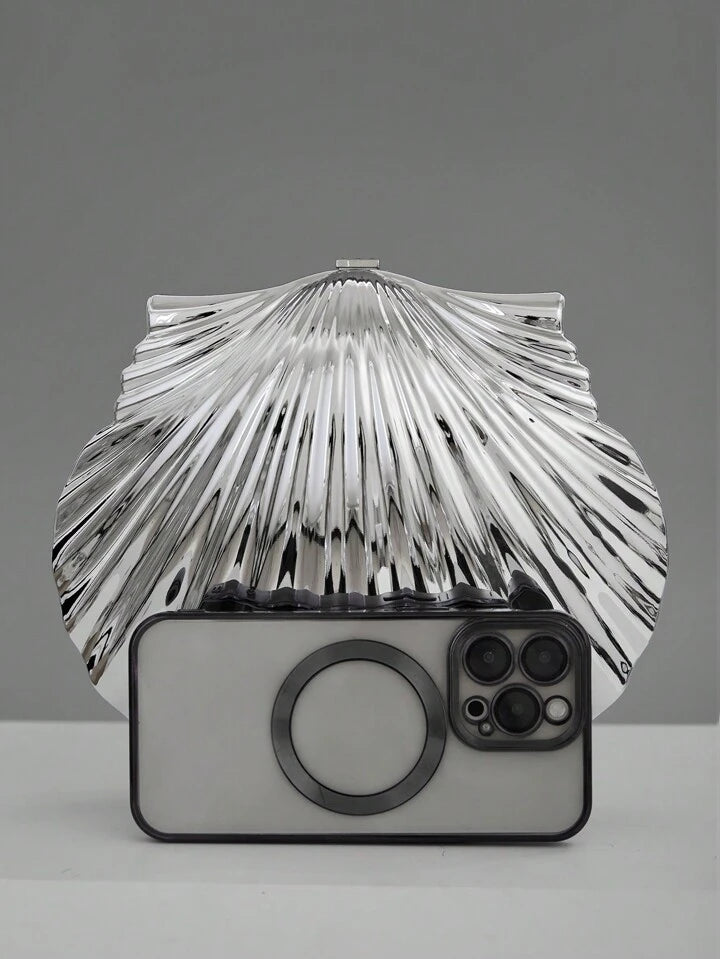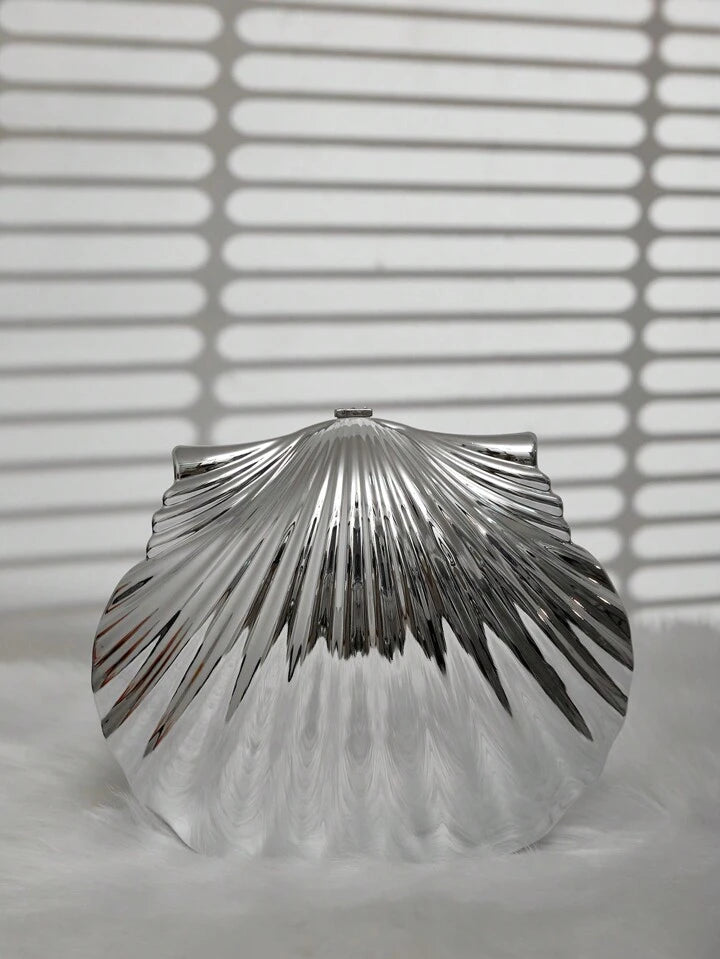 CM-BGS357177 Women Trendy Seoul Style Pearl Shell Chain Kiss Lock Handbag - Silver