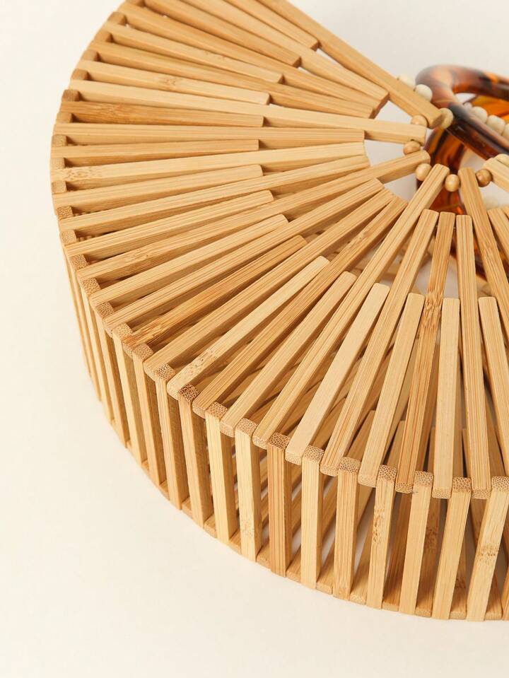 CM-BGS387662 Women Trendy Seoul Style Acrylic Hollow Out Bamboo Design Beach Bag With Drawstring Inner Bag