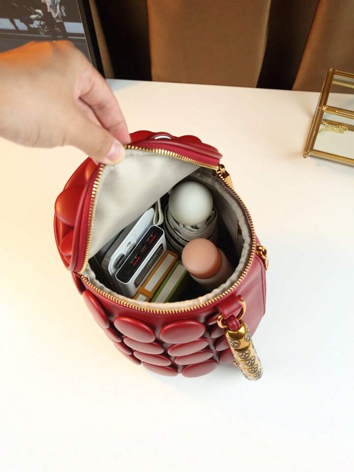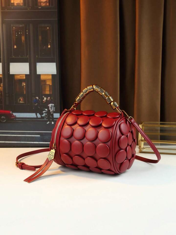 CM-BGS423997 Women Trendy Seoul Style Dotted Pattern Bolster Pillow Shaped Cylinder Bag - Burgundy