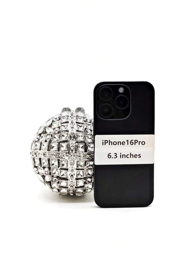 CM-BGS455581 Women Trendy Seoul Style Rhinestone Crystal Ball Shaped Evening Clutch Bag With Chain - Silver