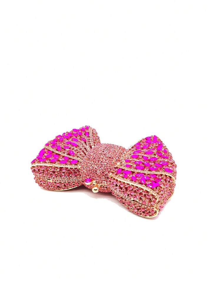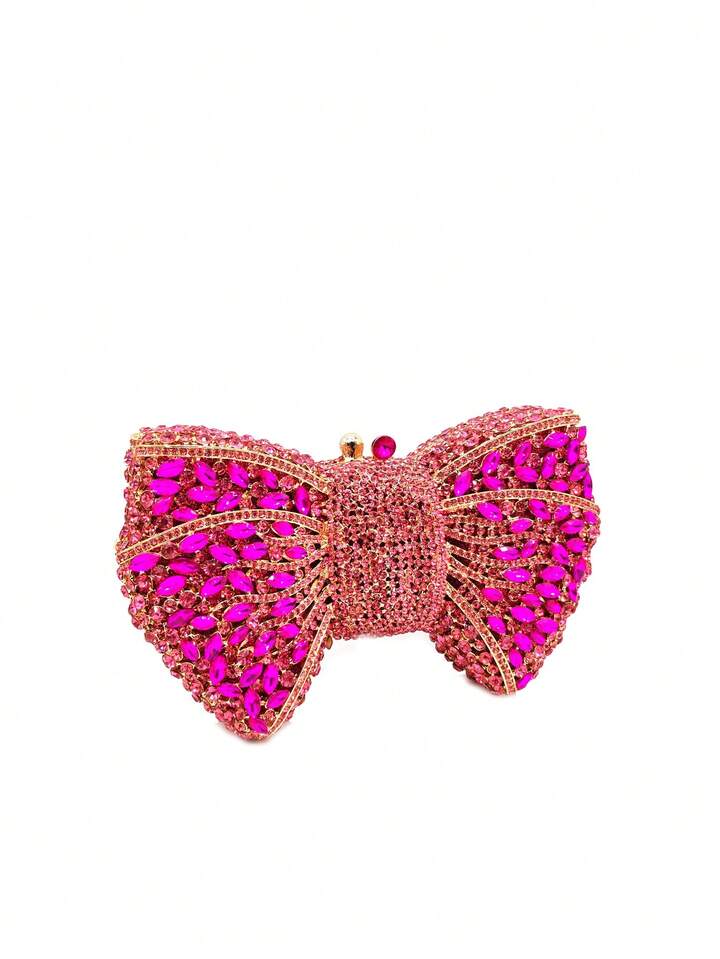 CM-BGS716261 Women Trendy Seoul Style Handmade Crystal Bow Decor Evening Clutch - Hot Pink