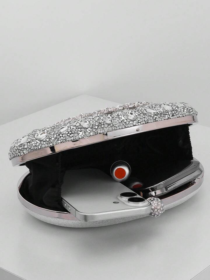 CM-BGS830790 Women Trendy Seoul Style Sunflower Rhinestone Decor Evening Clutch Bag - Silver