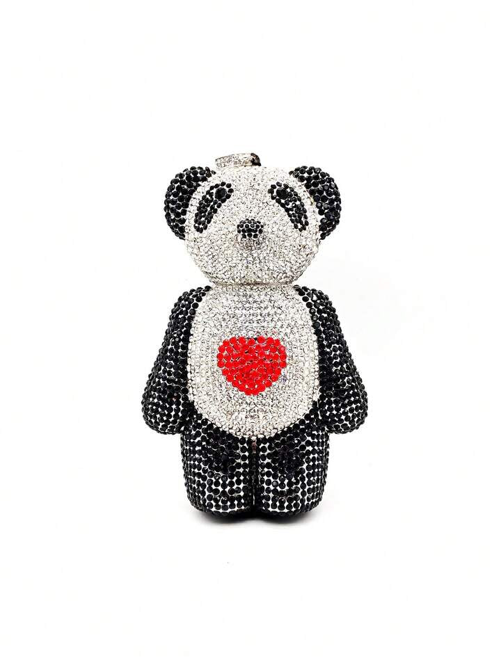 CM-BGS871096 Women Trendy Seoul Style Bear Shaped Rhinestones Crystal Evening Clutch Bag - Black