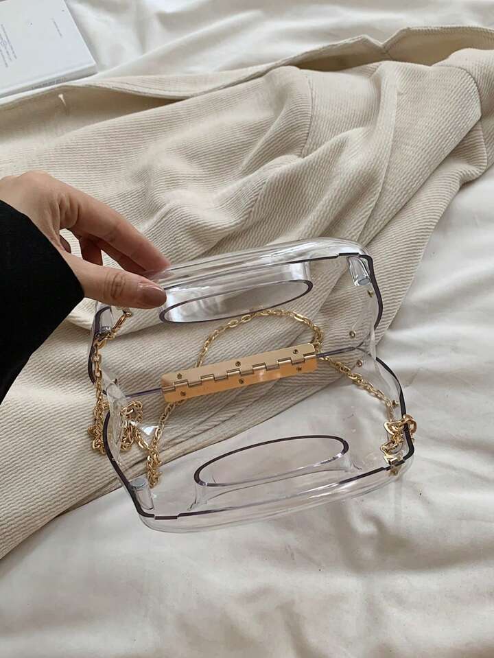 CM-BGS896406 Women Trendy Seoul Style Acrylic Box Transparent Shoulder Bag With Chain