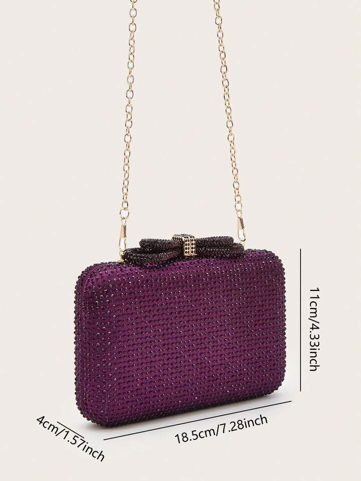 CM-BGS900180 Women Trendy Seoul Style Exquisite Rhinestone Bow Decor Evening Box Bag - Purple