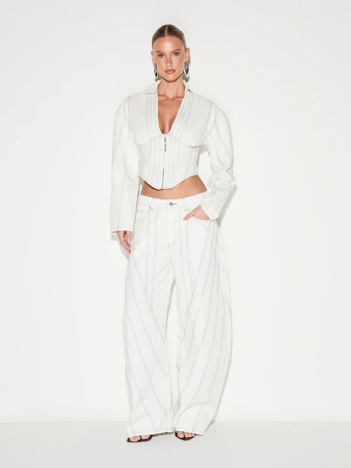 CM-BS091191 Women Casual Seoul Style Low Waist Extra Long Baggy Wide Leg Jeans - White
