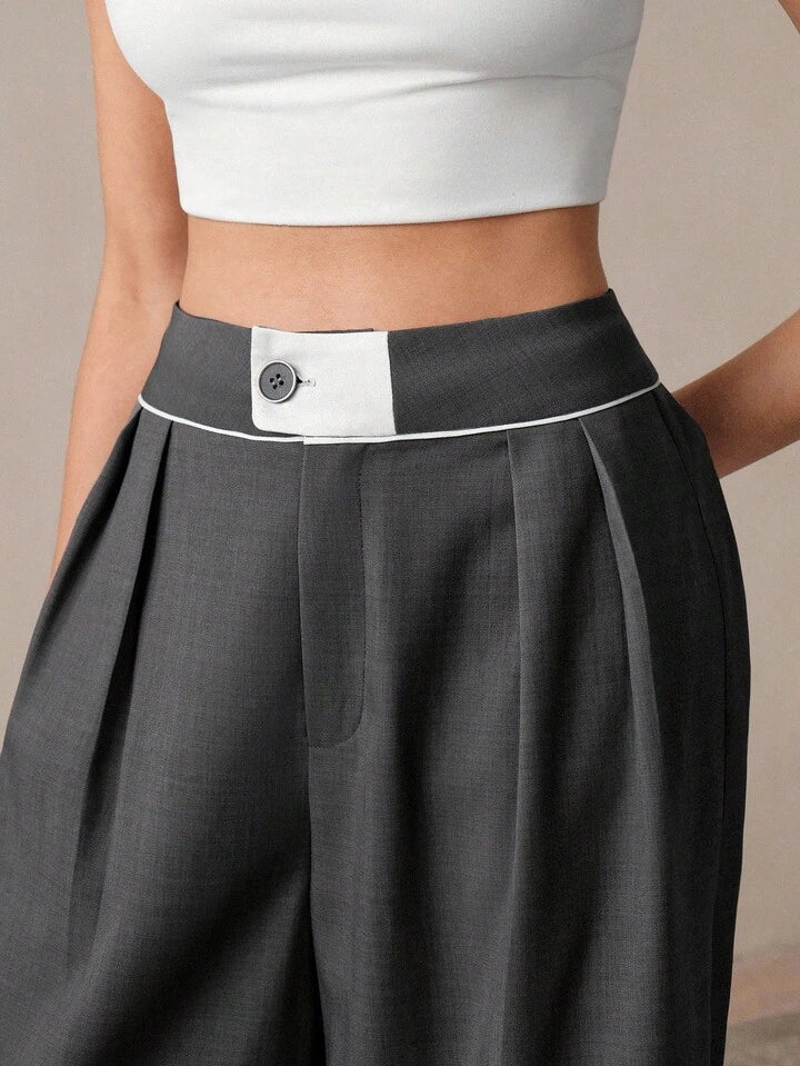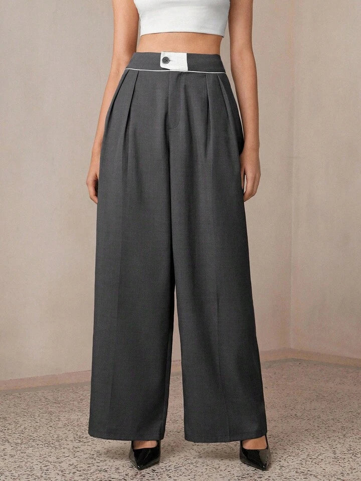CM-BS433170 Women Casual Seoul Style Contrast Color Maxi Wide Leg Suit Pants - Dark Gray