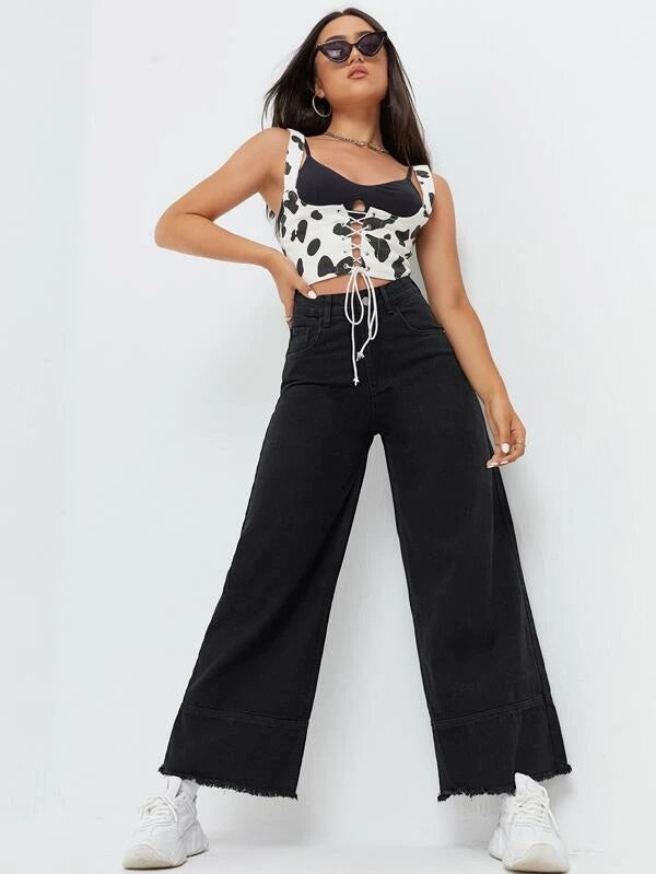 CM-BS511784 Women Preppy Seoul Style High Waist Wide Leg Jeans - Black