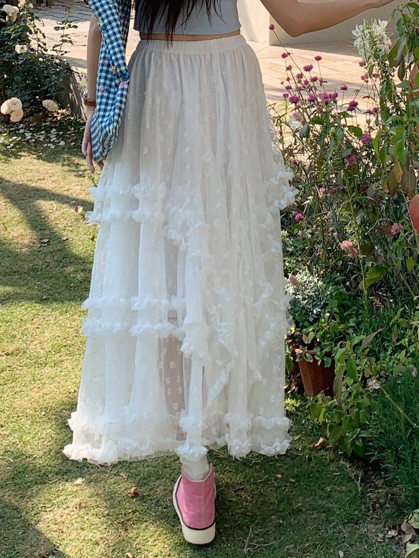 CM-BS913929 Women Trendy Bohemian Style Embroidery Mesh Loose A-Line Skirt - White