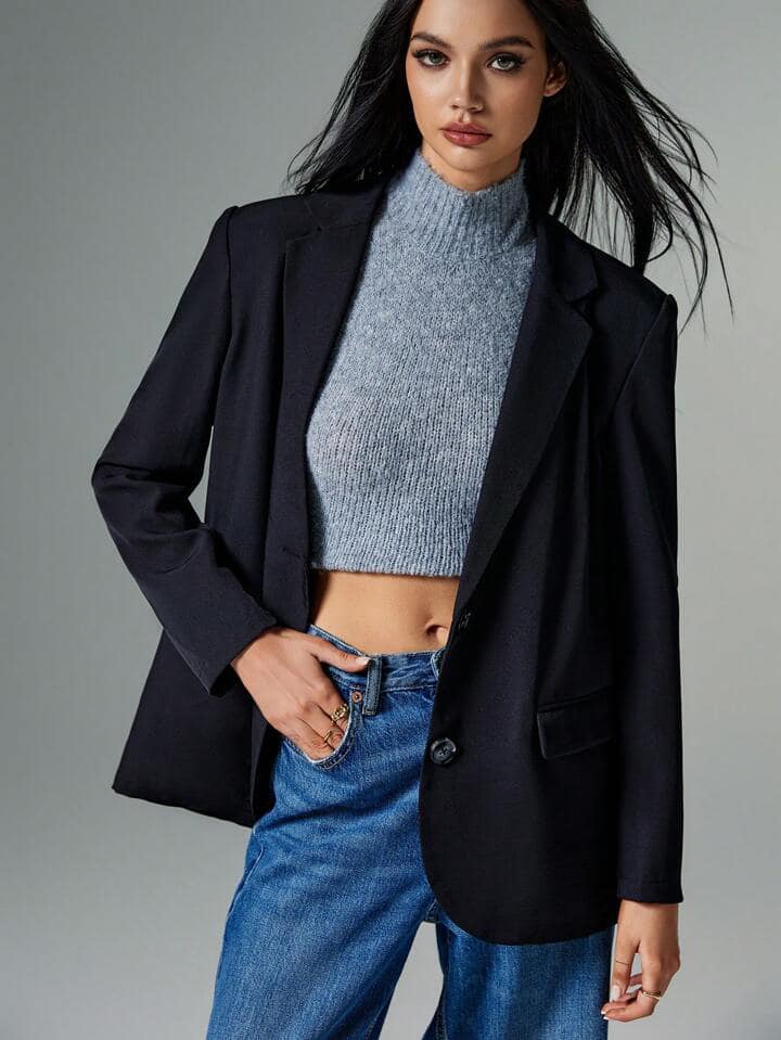 CM-CS671426 Women Casual Seoul Style Lapel Single Button Oversized Blazer - Black