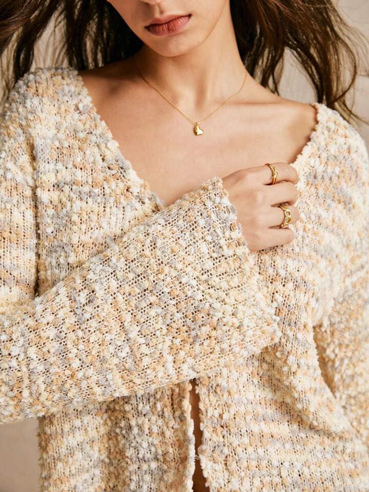 CM-CS721622 Women Casual Seoul Style V-Neck Button Front Long Sleeve Soft Fluffy Cardigan