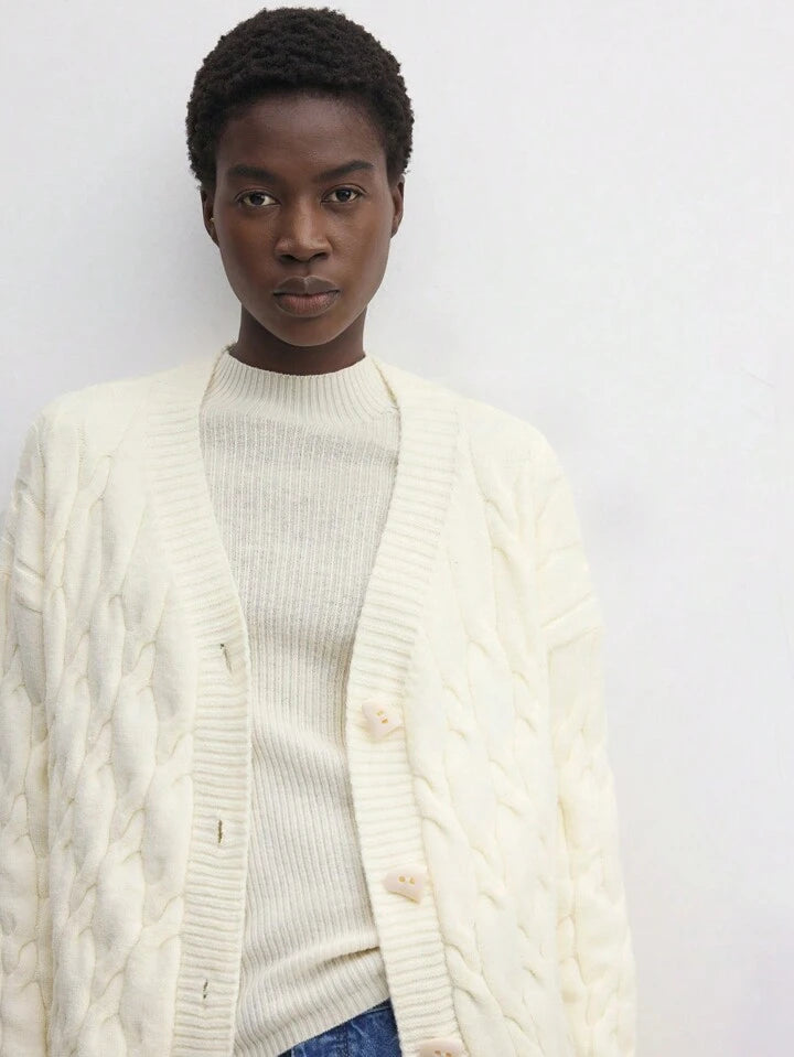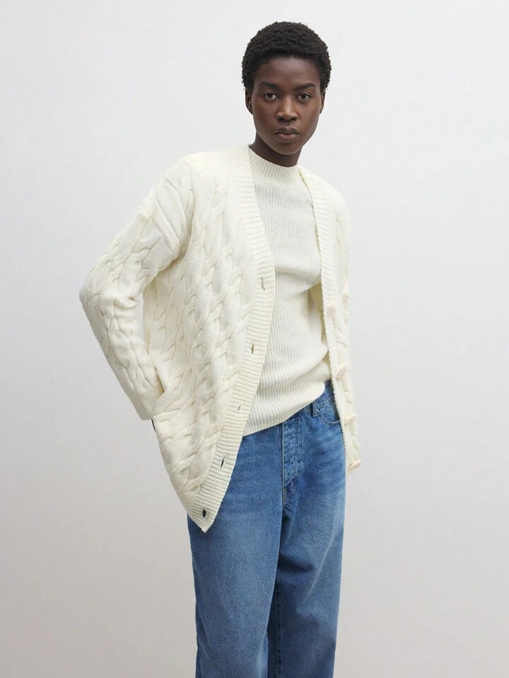 CM-CS755520 Women Casual Seoul Style V-Neck Drop Shoulder Long Sleeve Thermal Lined Cardigan Sweater
