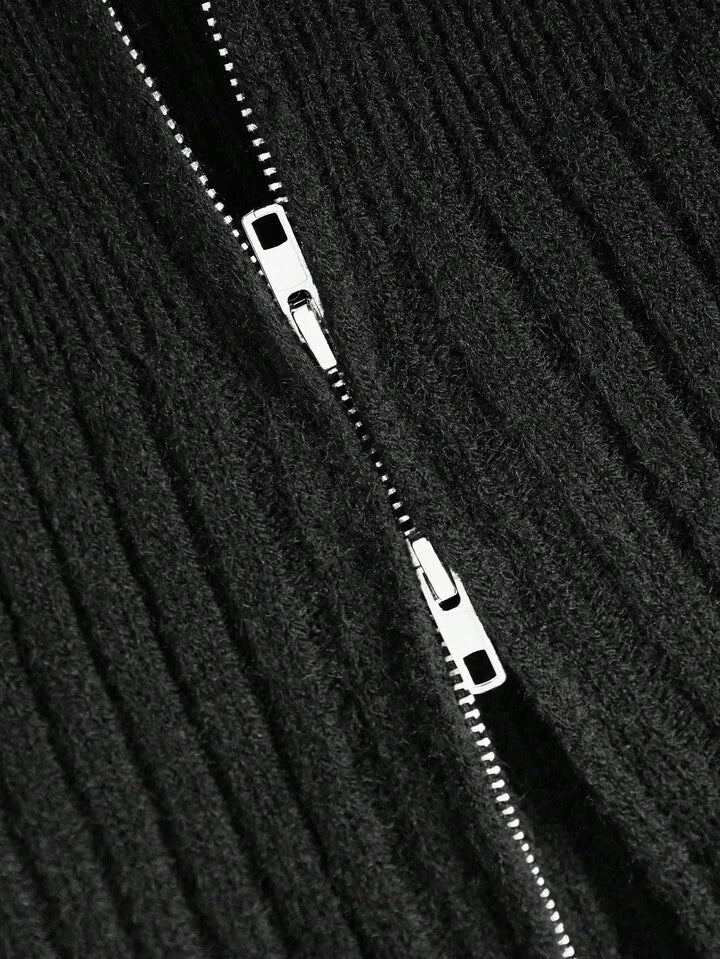 CM-CS791813 Women Casual Seoul Style Stand Collar Double-Ended Zipper Ribbed Yarn Short Fitted Cardigan