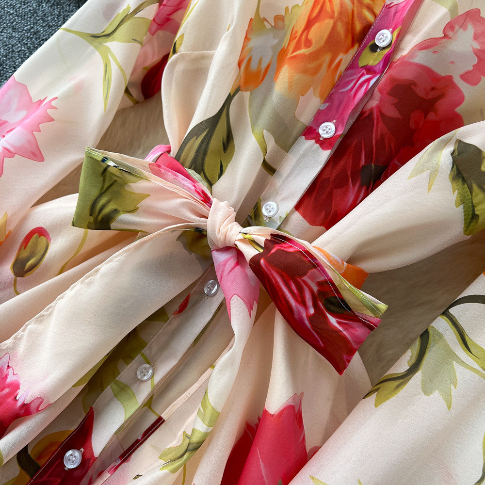 CM-DY067889 Women Elegant Seoul Style Lapel Neckline Floral Print Long Sleeve Maxi Dress