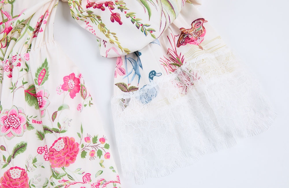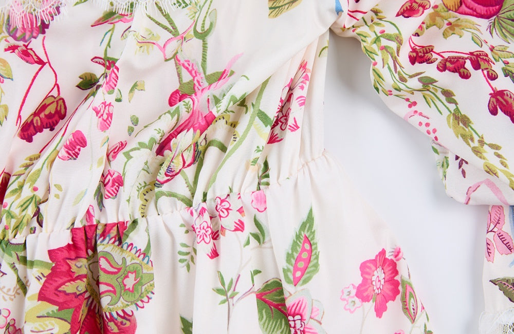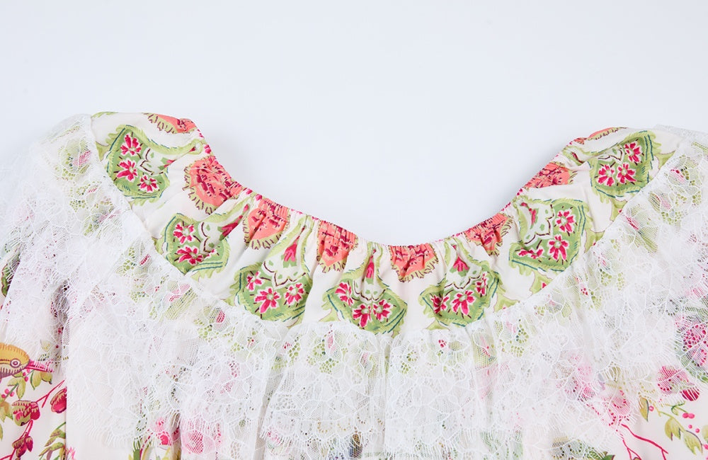 CM-DY068239 Women Elegant European Style Lace Floral Print Strapless Long Sleeve Mini Dress