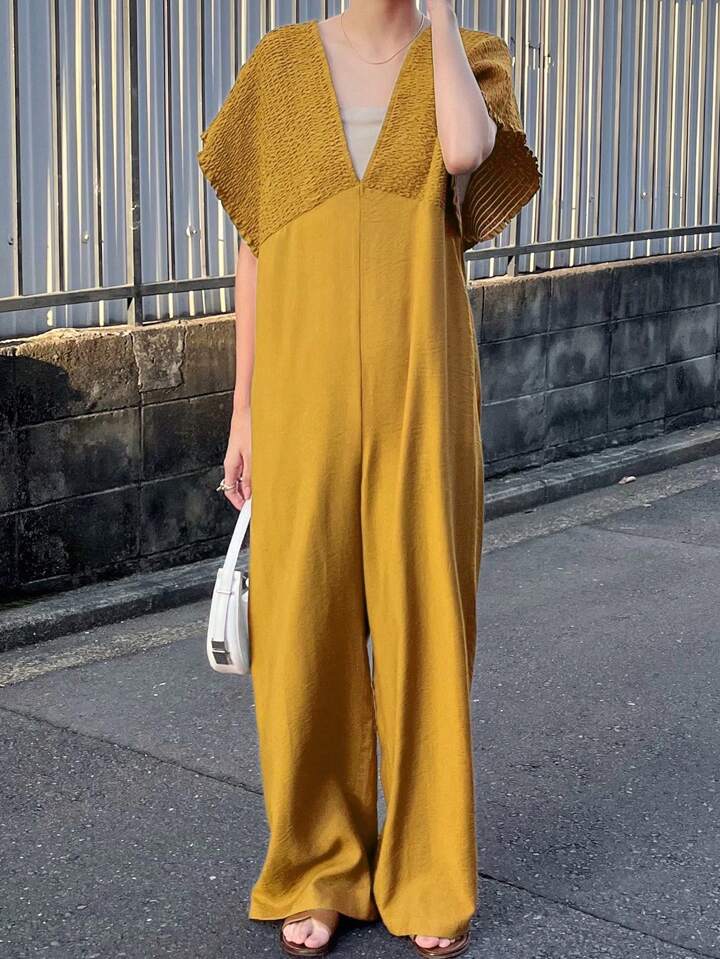 CM-JS619411 Women Trendy Bohemian Style V-Neck With Drawstring Jumpsuit Trousers - Yellow