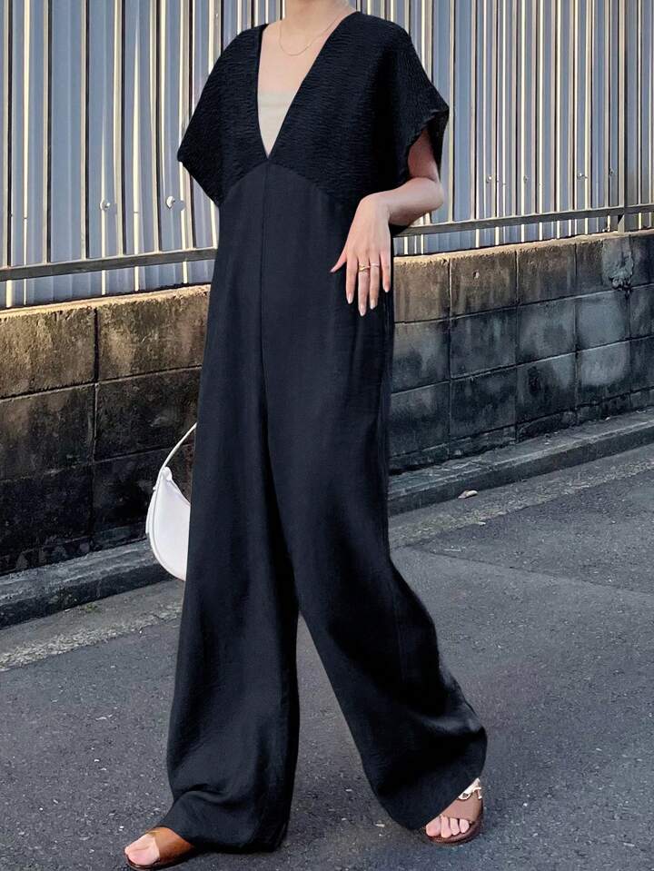 CM-JS657887 Women Trendy Bohemian Style V-Neck With Drawstring Jumpsuit Trousers - Navy Blue