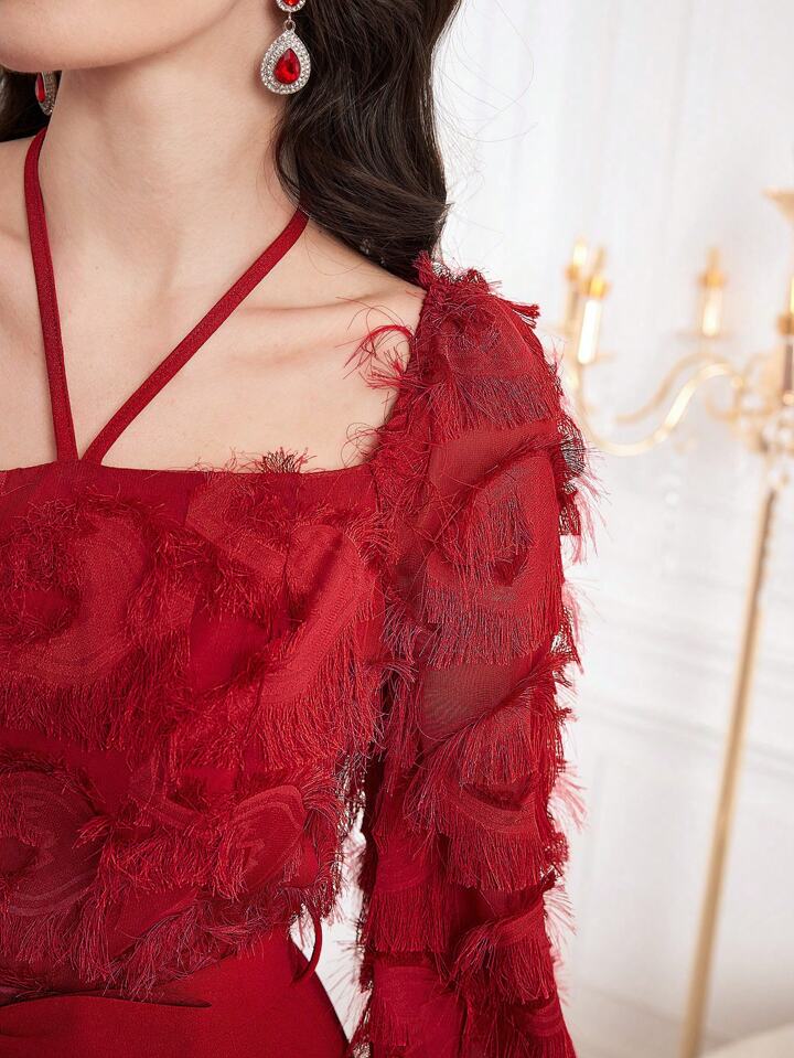 CM-JS726866 Women Elegant Seoul Style Square Neck Lantern Sleeve Waist Belt Jumpsuit - Red