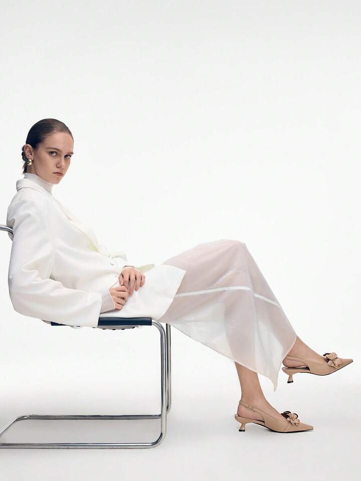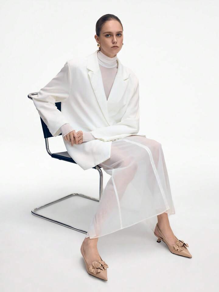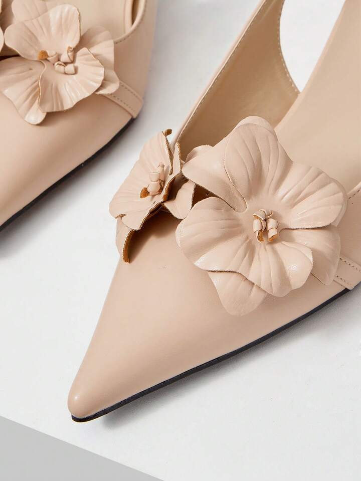 CM-SHS069952 Women Trendy Seoul Style Floral Decor Pointed Toe Pumps - Baby Pink