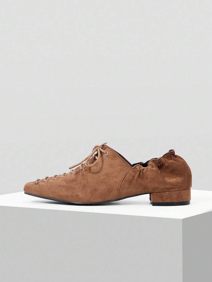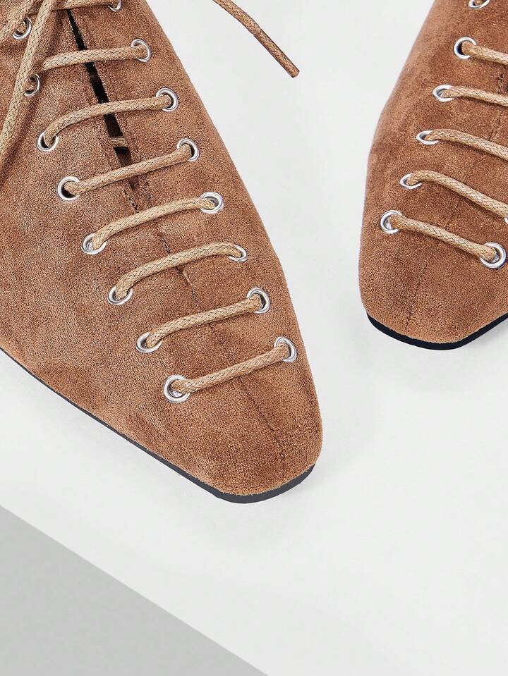 CM-SHS152242 Women Trendy Seoul Style Pointed Toe Criss-Cross Strap Low Heel Flats - Khaki
