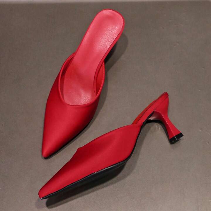 CM-SHS311454 Women Trendy Seoul Style Pointed Toe Mules High Heel Slides - Red