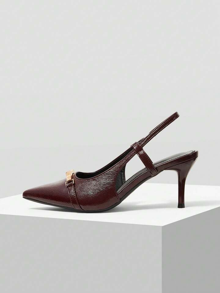 CM-SHS386838 Women Trendy Seoul Style Metal Buckle Decor Ankle Strap High Heel Sandals - Brown