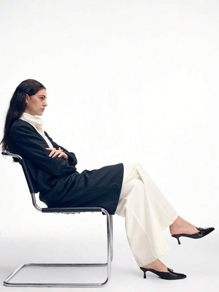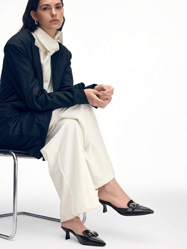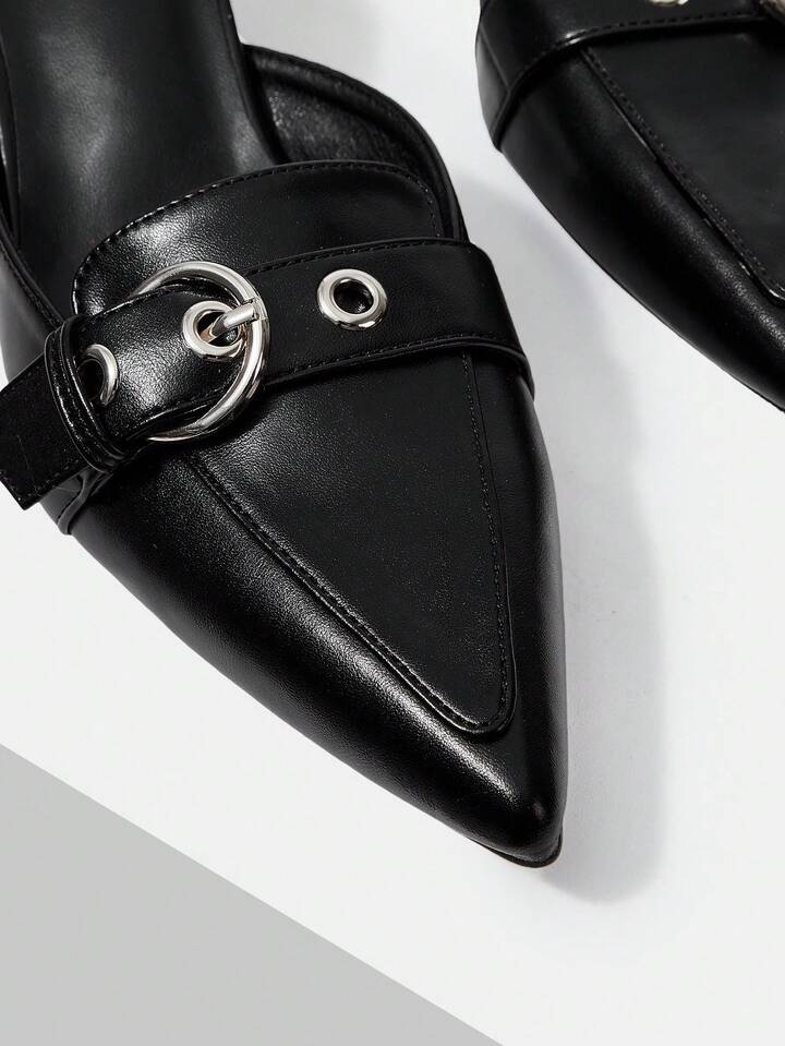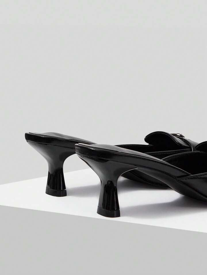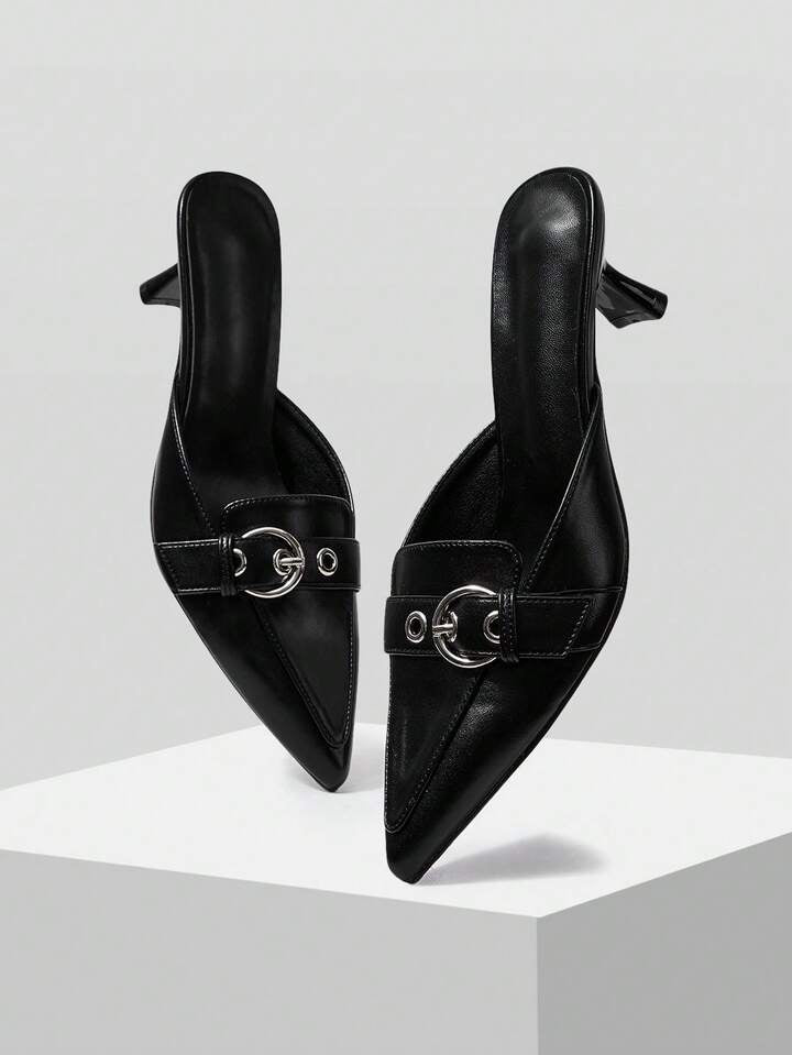 CM-SHS472346 Women Trendy Seoul Style Pointed Toe Buckle Design High Heel Mules - Black