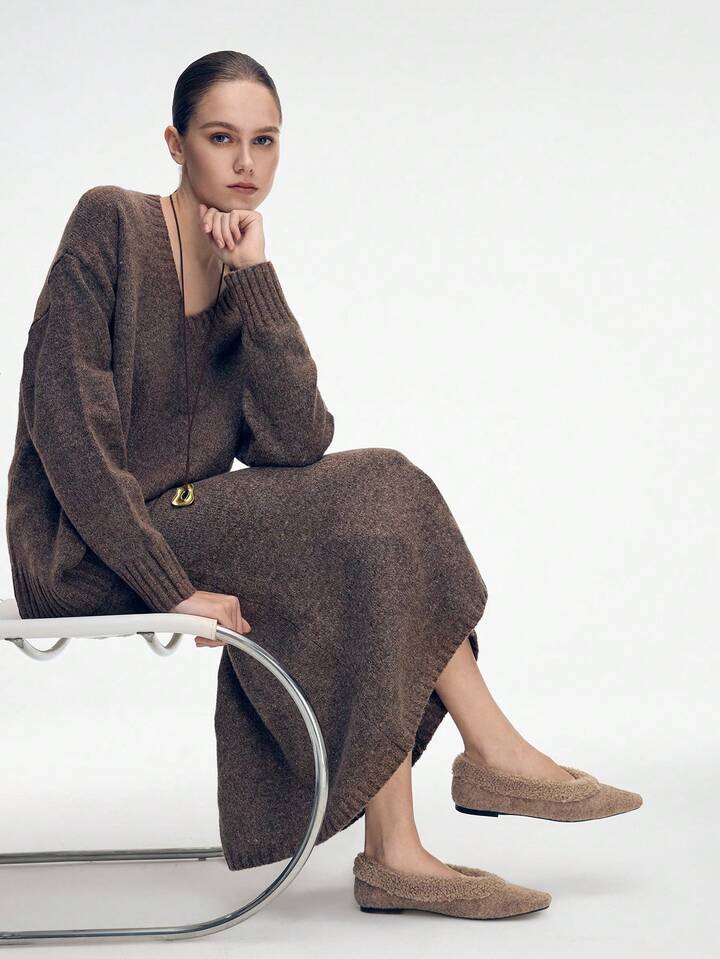 CM-SHS559490 Women Trendy Seoul Style Plush Pointed Toe Flats - Apricot