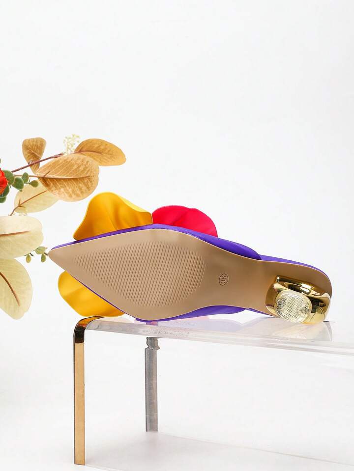 CM-SHS627257 Women Trendy Seoul Style Asymmetric Heel Multi-Color Rhinestone Glass Floral Design High Heel Shoes