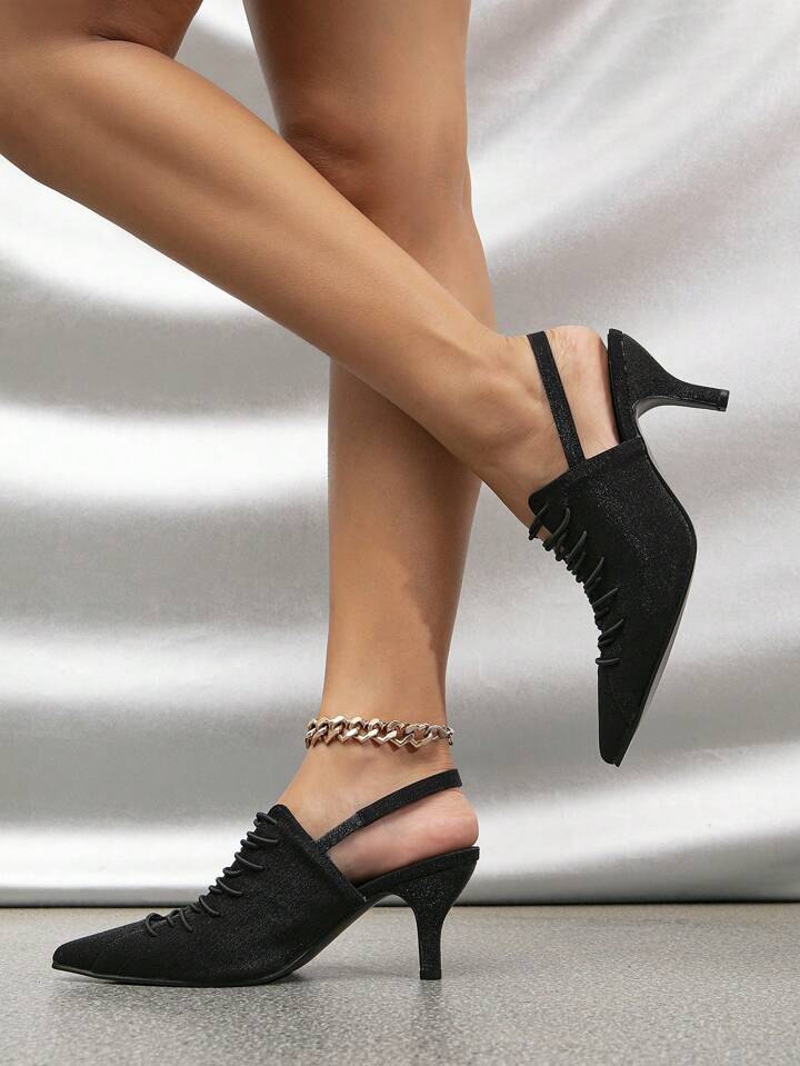 CM-SHS636424 Women Trendy Seoul Style Hollow Out Pointed Toe Strap Mule High Heel Sandals - Black