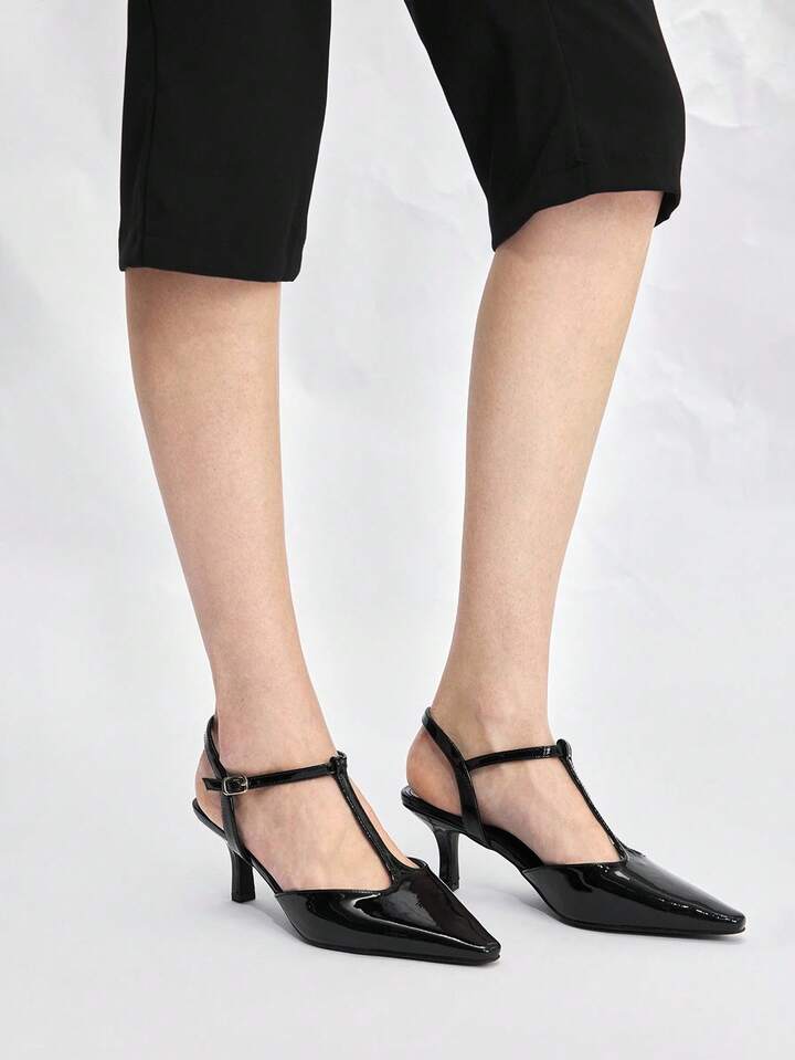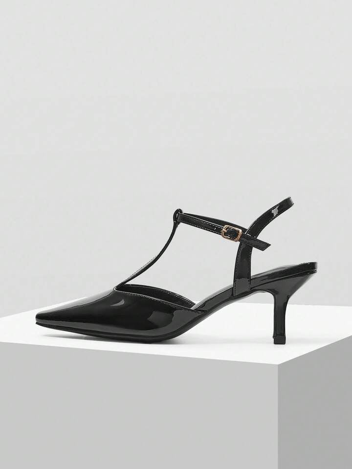 CM-SHS964869 Women Trendy Seoul Style Pointed Toe Strap Stiletto High Heel Pumps - Black