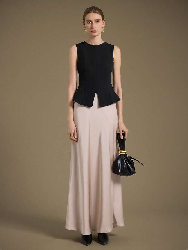 CM-TS119121 Women Elegant Seoul Style Round Neck Sleeveless Ruffle Hem Design Top - Black
